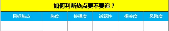 根据实际情况你可以增减一些判断标准,很多公众号自己也有追热点的一些硬性标准。